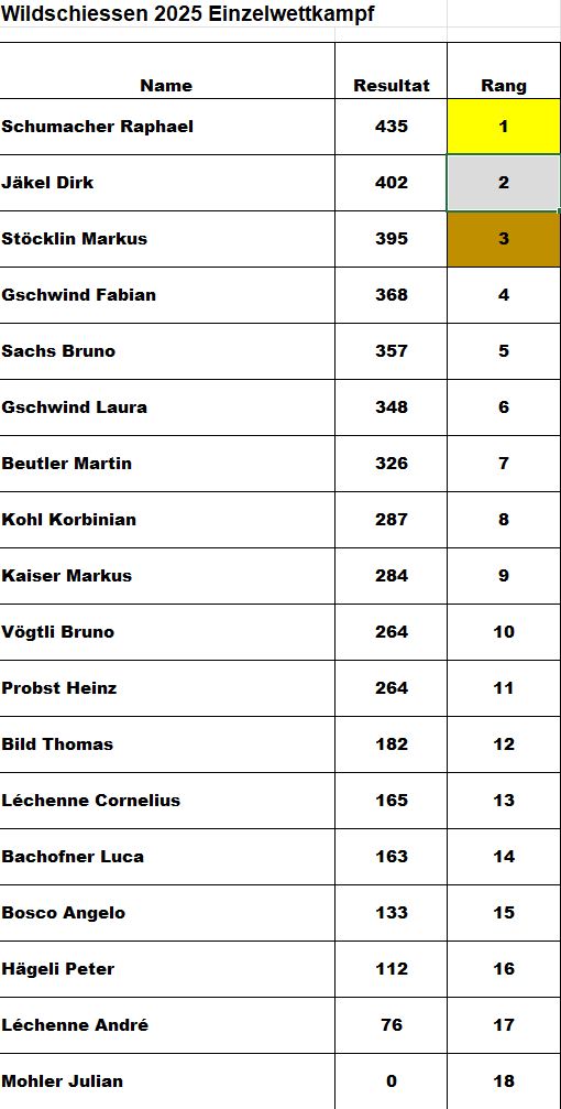 Ein herzlicher Glückwunsch geht an Raphael Schumacher, der sich mit einem hervorragenden Resultat von 435 Punkten den ersten Platz sicherte!