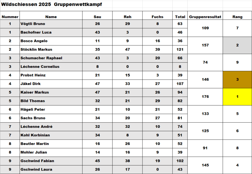 Das Wildschiessen 2025 war ein voller Erfolg – geprägt von sportlichem Ehrgeiz, Kameradschaft und viel Freude am Schiesssport.